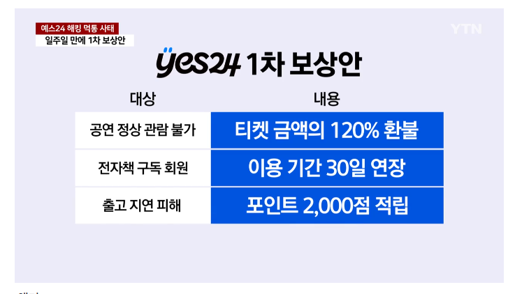 예스24가 내놓은 첫 번째 보상안은 서비스별로 구체화되어 있다. 특히 다음과 같은 항목이 눈에 띈다: